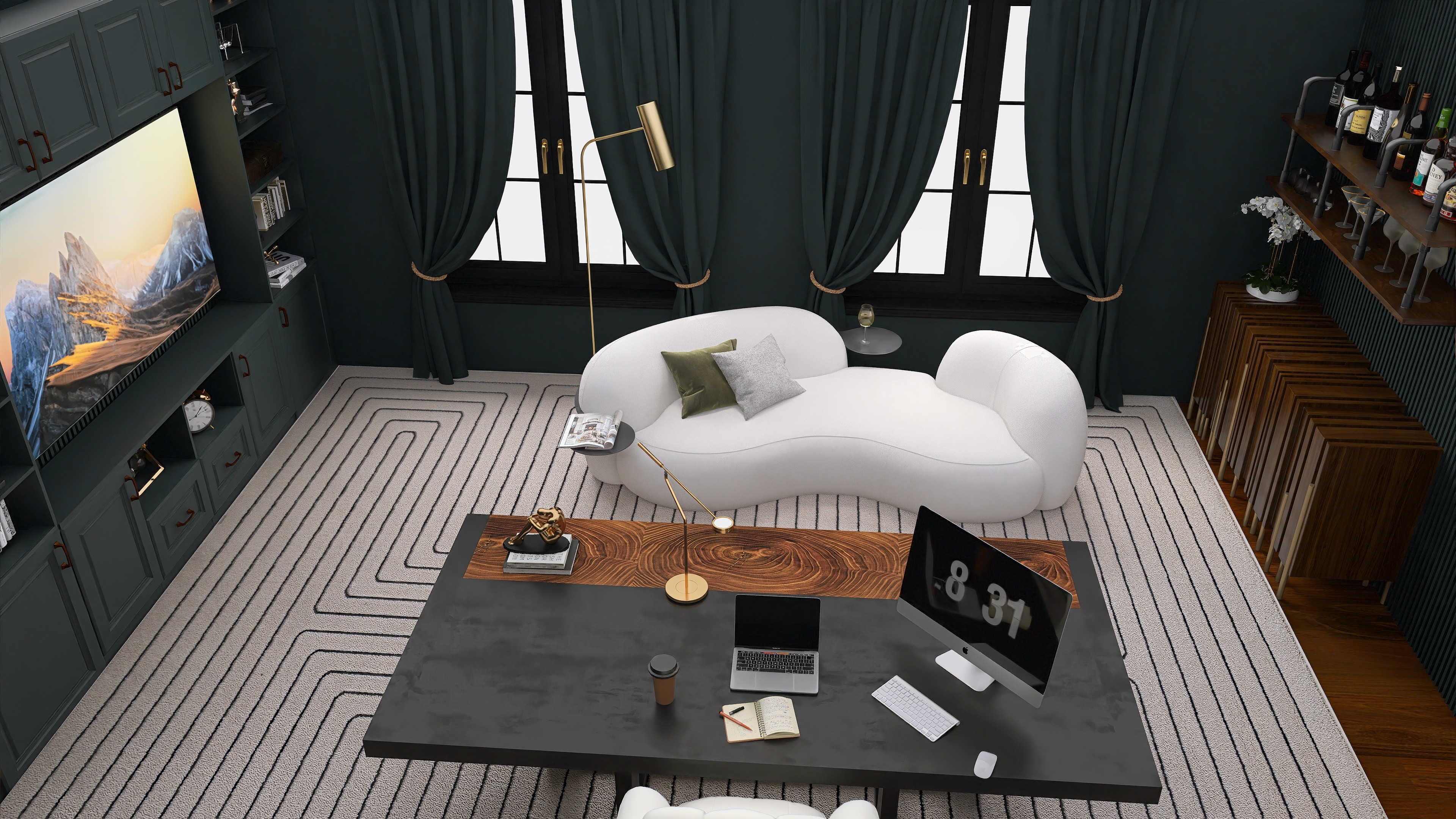 Fully interactive 360° scene. Drag to look around the room and scroll to zoom in or out.