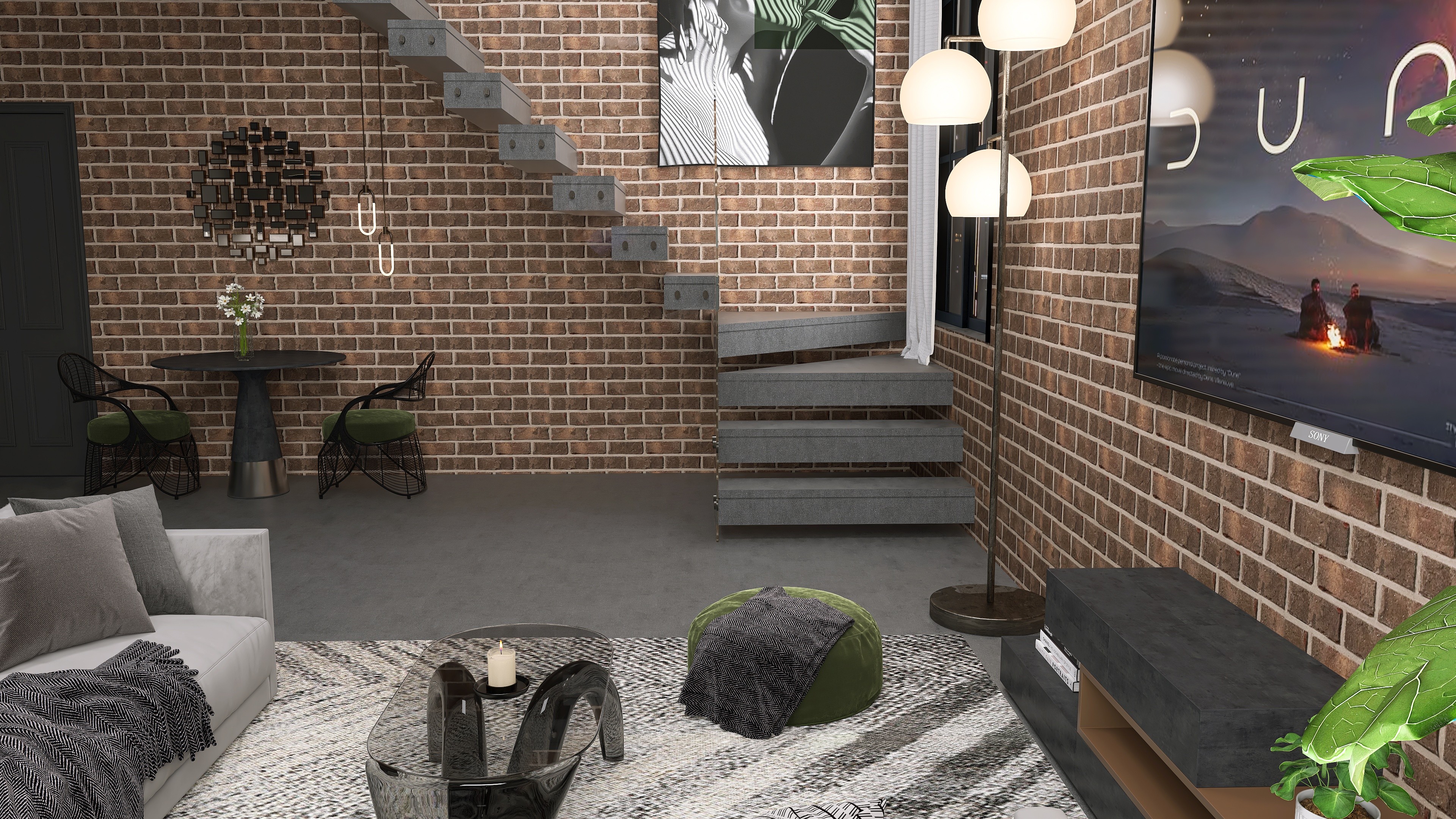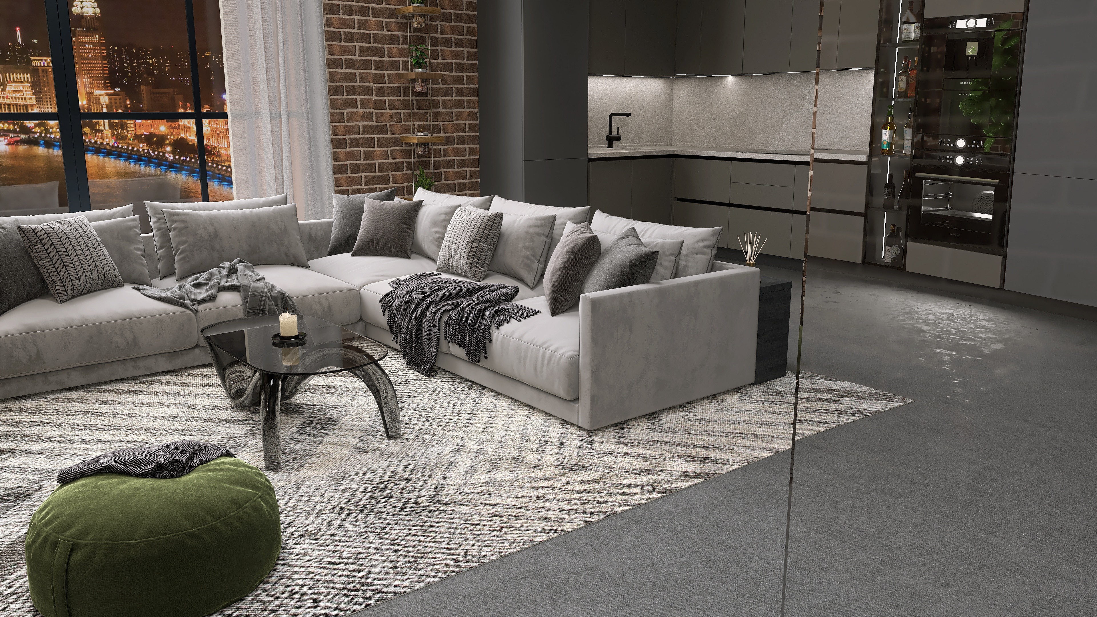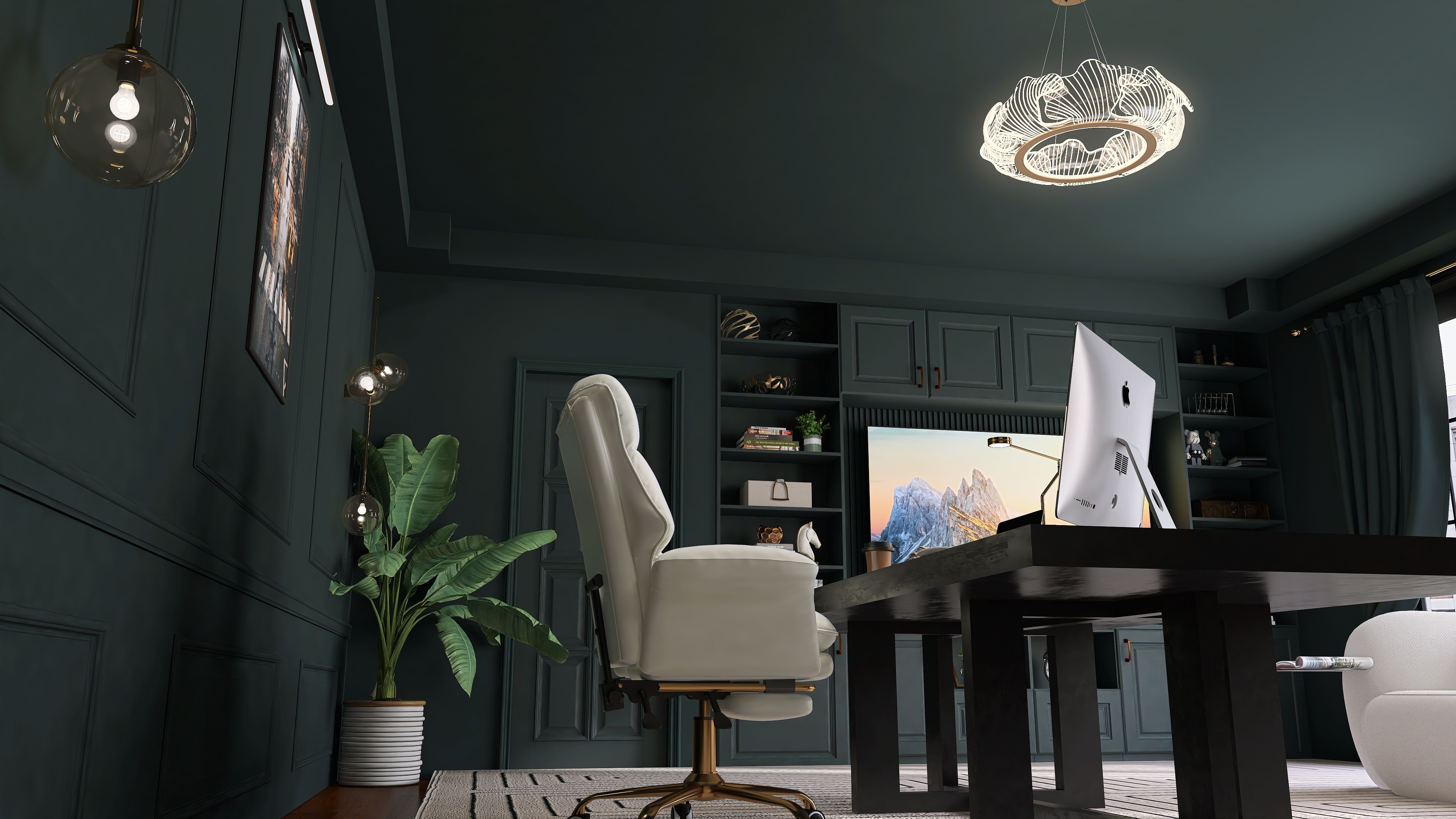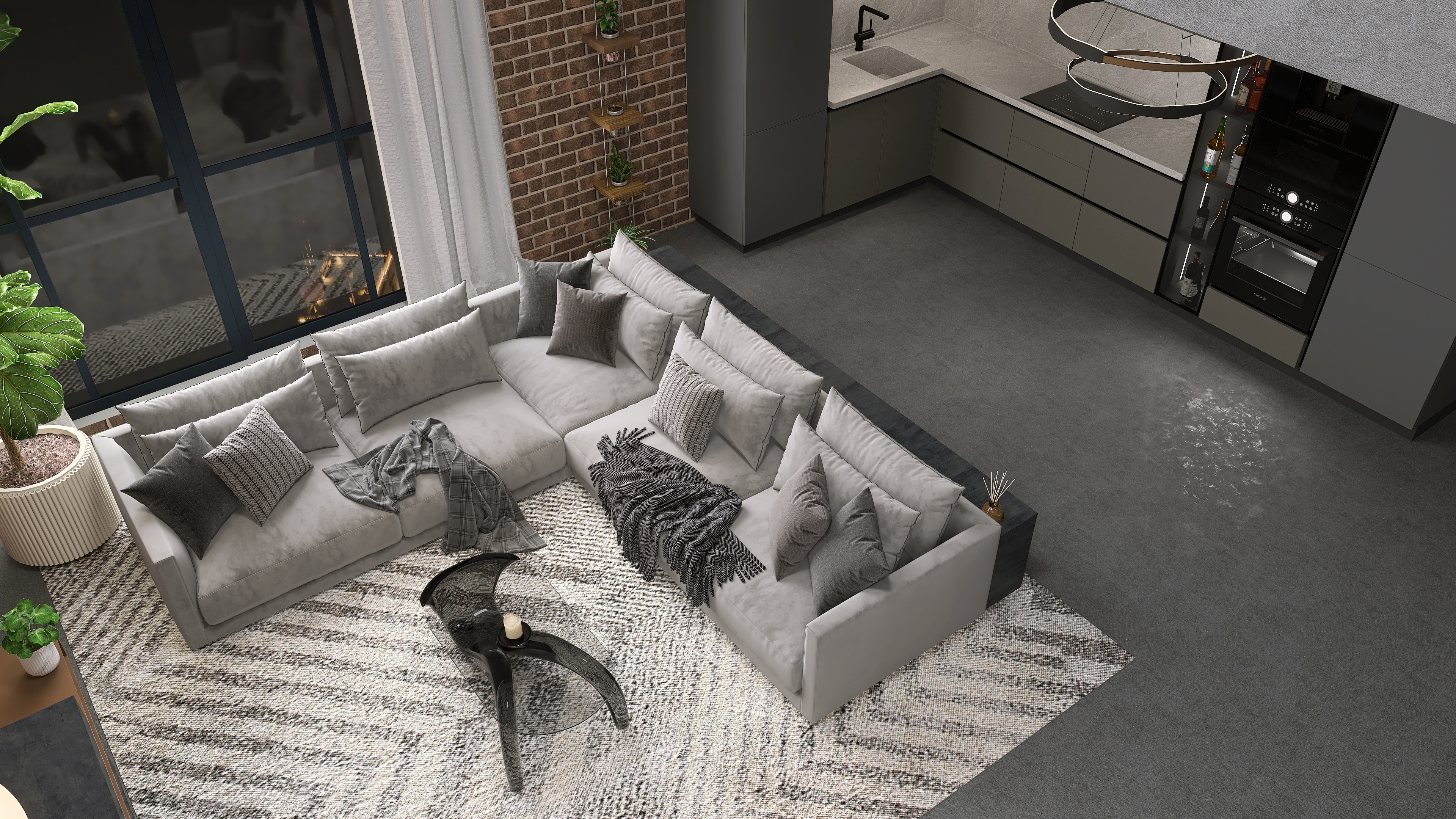 Photorealistic close-up renders. Use the arrows to view detailed perspectives of the space.